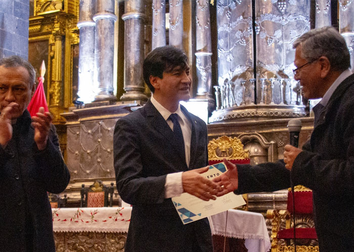 El evento contó con la presencia de Mons. Richard Daniel Alarcón Urrutia, Arzobispo Metropolitano del Cusco, y Mons. Lizardo Estrada Herrera OSA, Obispo Auxiliar del Cusco. Ambos entregaron un merecido reconocimiento al Maestro Theo Tupayachi, Director de la Orquesta Sinfónica del Cusco, al Sr. Miguel Bueno, Promotor Cultural, y a la Dirección Desconcentrada de Cultura por su inestimable apoyo y compromiso en la realización de los "Conciertos Solidarios en la Basílica Catedral del Cusco".